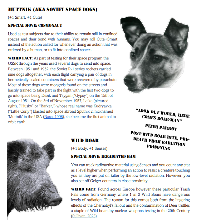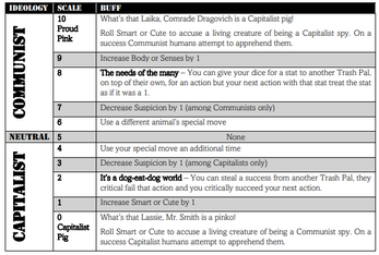 | Tags | Animals, Asset Pack, Dogs, Historical, One-shot, Parody, Supplement, trash-pals, Tabletop role-playing game |
